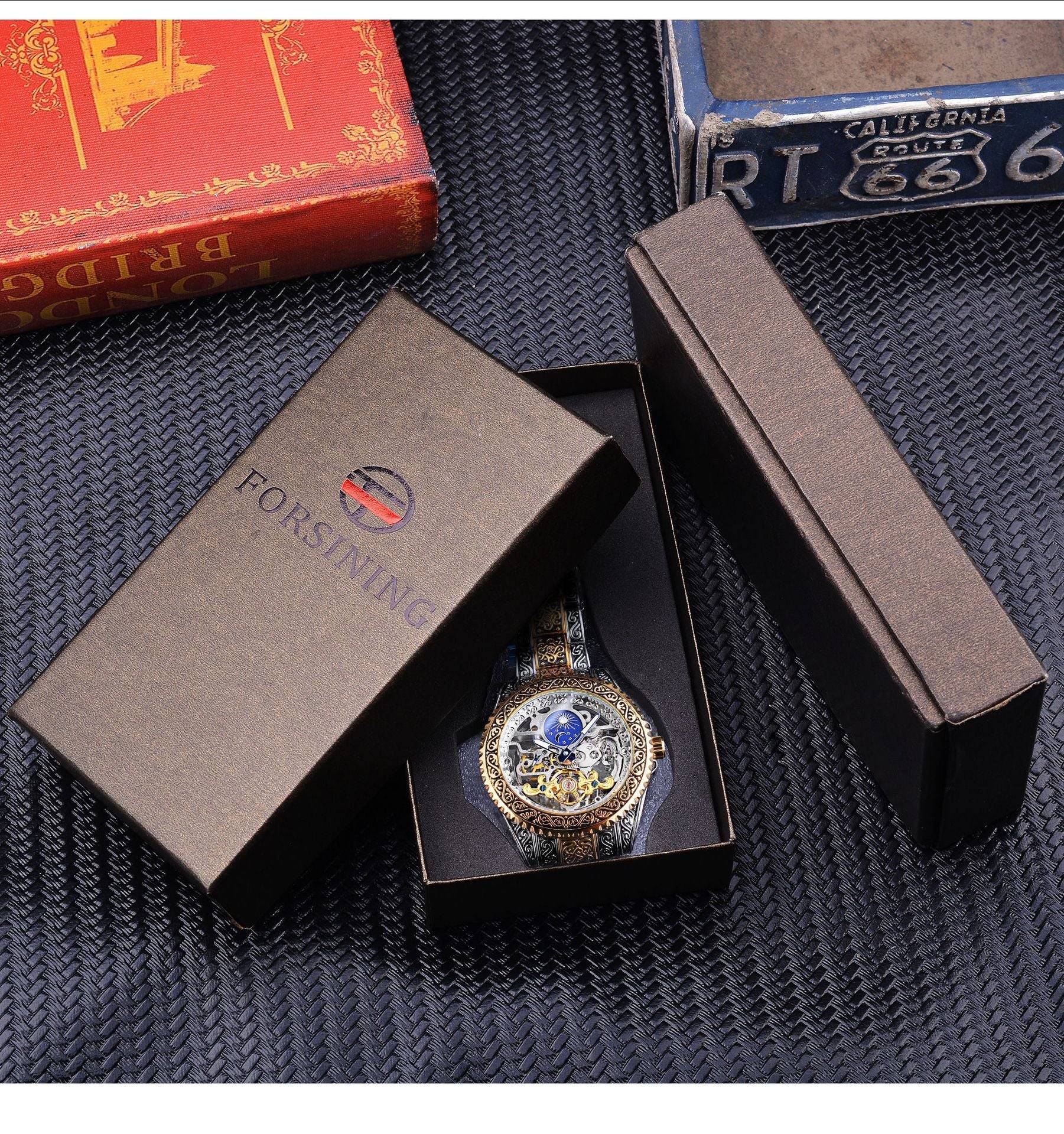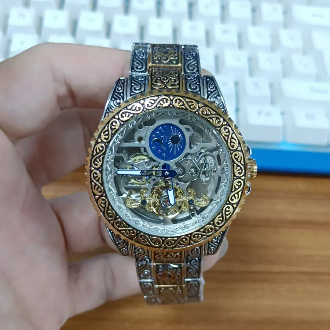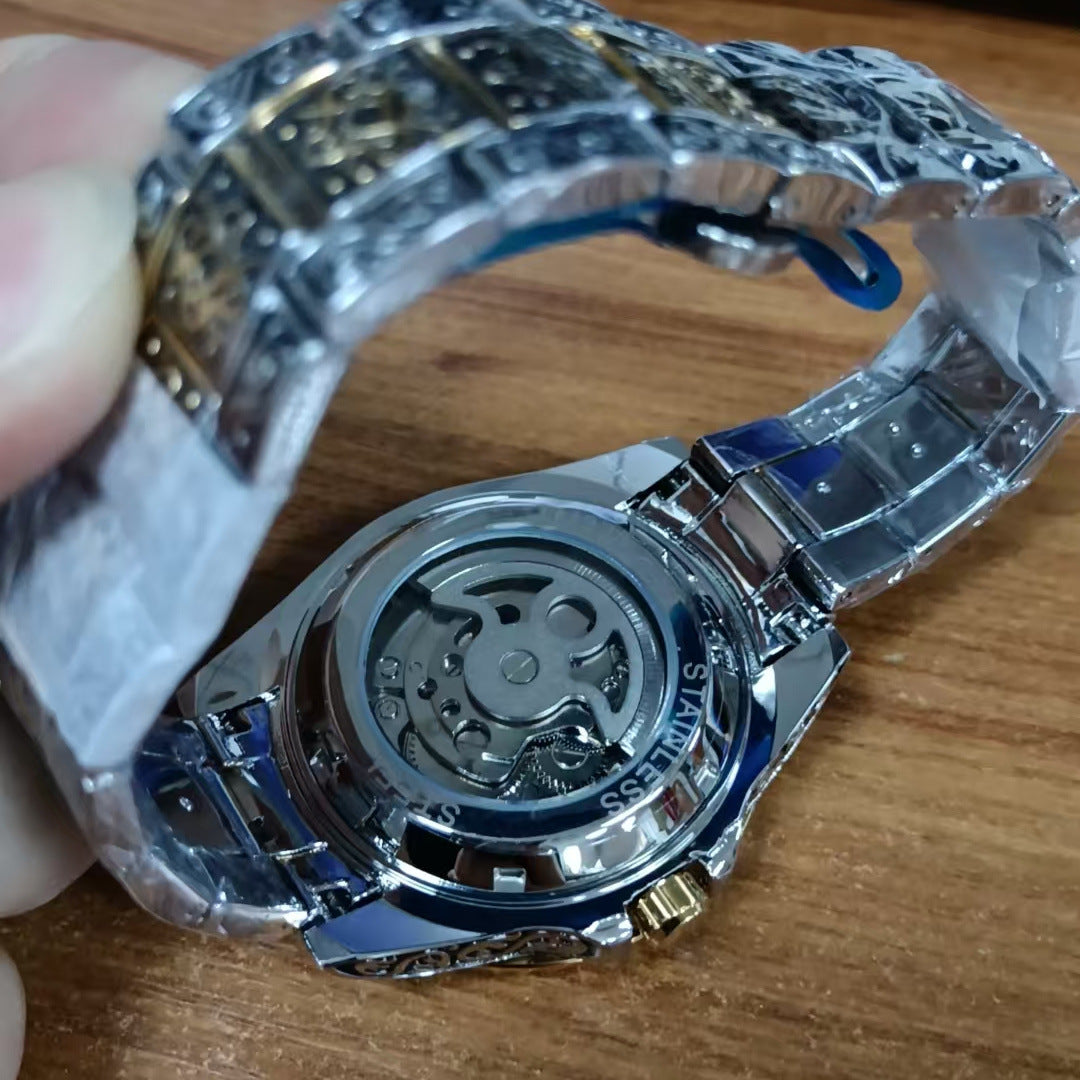 ساعة أوتوماتيكية ميكانيكية بتصميم عصري مجوف ونقش كلاسيكي أنيق