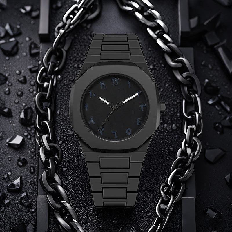 ساعة أوبسيديان إكليبس بأرقام عربية – فخامة سوداء بتصميم ستيلث قابلة للتعديل